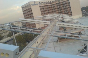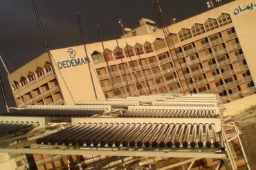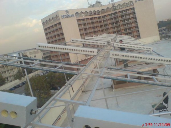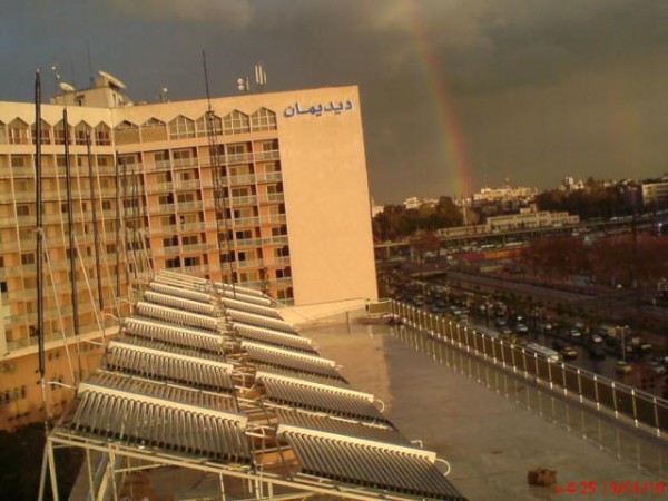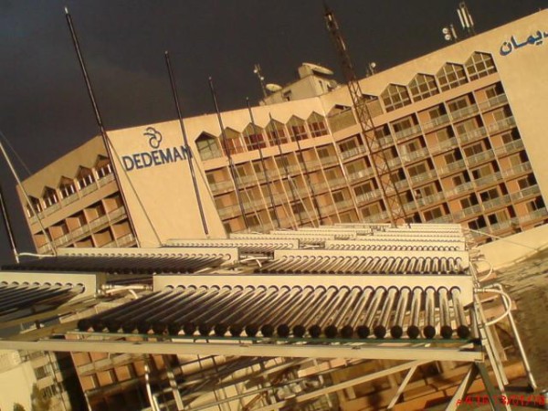 تم بعون الله وحمده إنجاز مشروع فندق نادي الرماية في دمشق ، حيث تم تأمين 10000 لتر ماء ساخن يوميا عن طريق الطاقة الشمسية بدارة مساعدة لدارة تسخين الماء عبر شوديرات تسخين المياه بوضع خمس خزانات بسعة 2000 لتر المطلية بمادة البورسلان من الداخل والتي تحوي إلى مبادلين ذات مردود عالي جدا . ندعكم أحبائي الزوار مع بعض الصور التي تم إلتقاطها أثناء تنفيذ المشروع